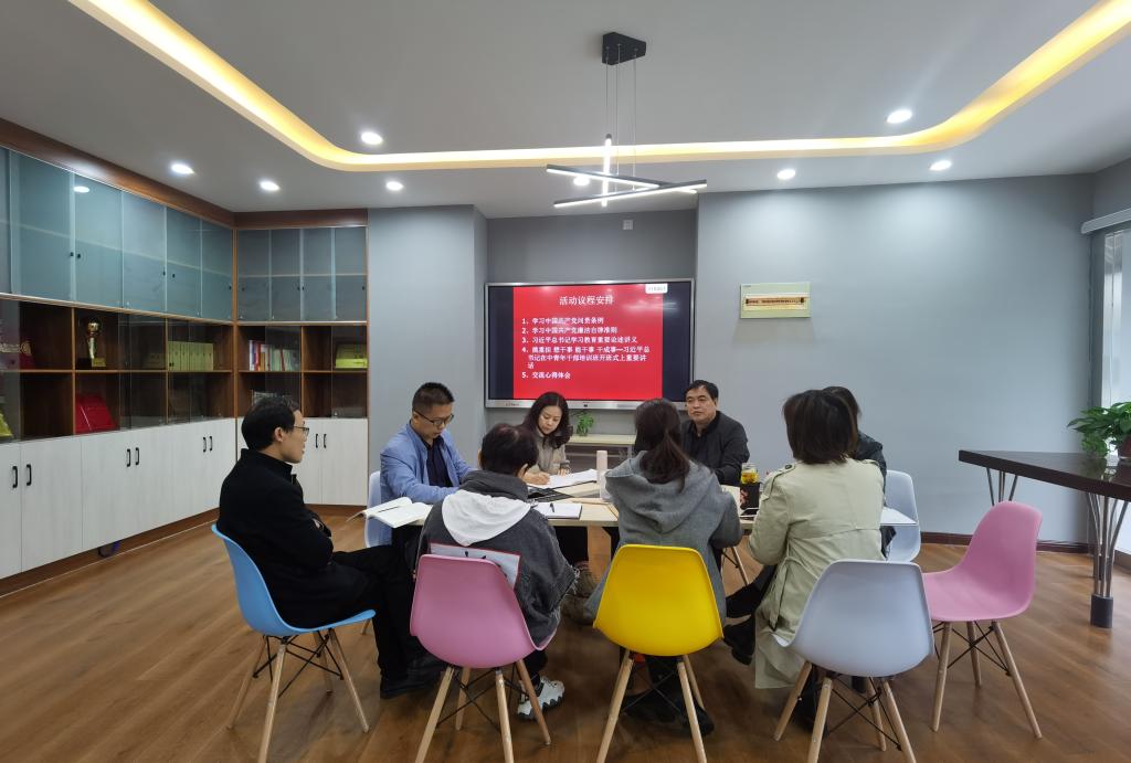第三党支部宣传委员刘二伟就《习近平总书记教育重要论述讲义》中的“坚持教育的‘四为服务’”精神做了讲解,并结合本部门工作谈了自己的学习感受。习近平总书记在2016年召开的全国高校思想政治工作会议上提出,我国高等教育要为人民服务,为中国共产党治国理政服务,为巩固和发展中国特色社会主义制度服务,为改革开放和社会主义现代化建设服务。大家表示,身处高校,要坚持高等教育社会主义办学方向,要认真领会“四为”要求,严格按照“四为”要求做好本职工作。